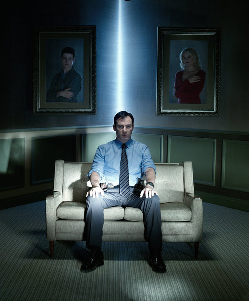 Awake, one of NBC’s most-anticipated new shows of the season is also another show without an air date — but that didn’t stop NBC from releasing the following cast pictures, including what looks like a potential promotional marketing material photograph in which are protagonist sits in a chair with a photo of his son and his wife framed on either side.