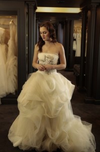 Heather | Honestly, I didn’t hate it as much as everyone else seems to. Maybe it was the vodka, but I thought it was better than a couple of episodes this season, and definitely better than one or two last season. It was over-the-top enough that I the most ridiculous parts amusing, and I actually felt really bad for Blair. I wanted to hug her. While I find it hilarious that they are using source material like The End of the Affair for a trashy, teen drama, I actually liked the directing style of the episode. Something I really liked about season one was the differences in style and format, and then somewhere in season two, they lost that. Everything was very straight forward and generic. So, while this episode might have failed on a lot of levels, I like that they were mixing up the style a little. Obviously, I also enjoyed the DB elements of the show too — the hug, the Vera Wang scene, and then of course, him looking at her longingly when she was with Louis at the midnight kiss.