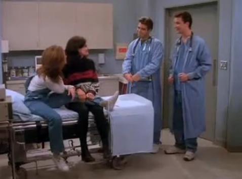 When Rachel hurts her ankle while removing the Christmas lights, Rachel and Monica are forced to switch identities so that Rachel can use Monica’s insurance. Things become complicated when the two doctors that treated Rachel – as Monica – ask the girls out. Meanwhile, Phoebe is still upset that Joey is dating Ursula especially when Ursula starts giving Joey the cold shoulder.