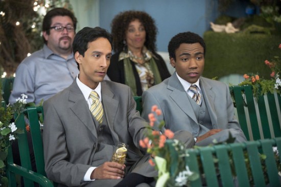 All the while, Troy and Abed have arrived in normal grey suits with normal humor and normal reactions to all the madness going on around them. Then, Troy spots Annie’s Boobs (!) and goes up to Abed, telling him to embrace their weirdness. Dean Pelton informs Shirley that a Subway is being built in place of her sandwich shop, but she’s more worried about Pierce’s reaction. We end to a shot of him drunkenly talking to his father’s grave, which is always good.