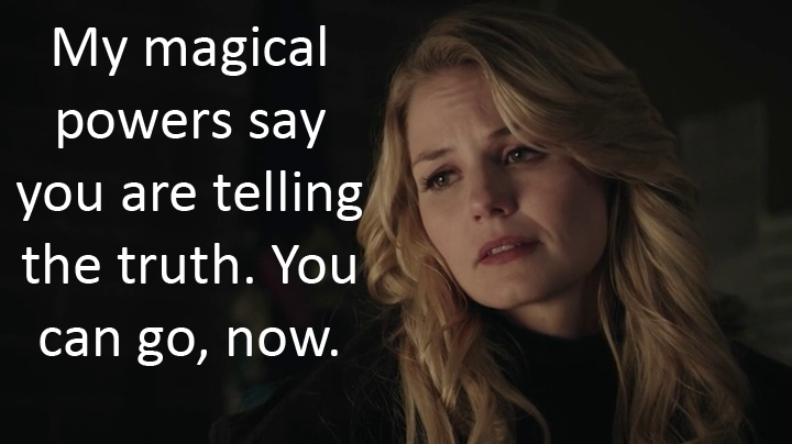 This week started where we left off last week, which was David going into questioning. Since Emma has these “magical powers” where she can tell if people are lying or not, she sees David is telling the truth and lets him go. I’m sure that wouldn’t work in the real world, but this is Storybrooke so just go with it. Next we are at the diner with Ruby talking to August (AKA The Stranger). We still don’t know his real purpose here and I have no idea why we don’t. Anyway, he is talking to Ruby about how he can go wherever he wants while Granny keeps calling at her.