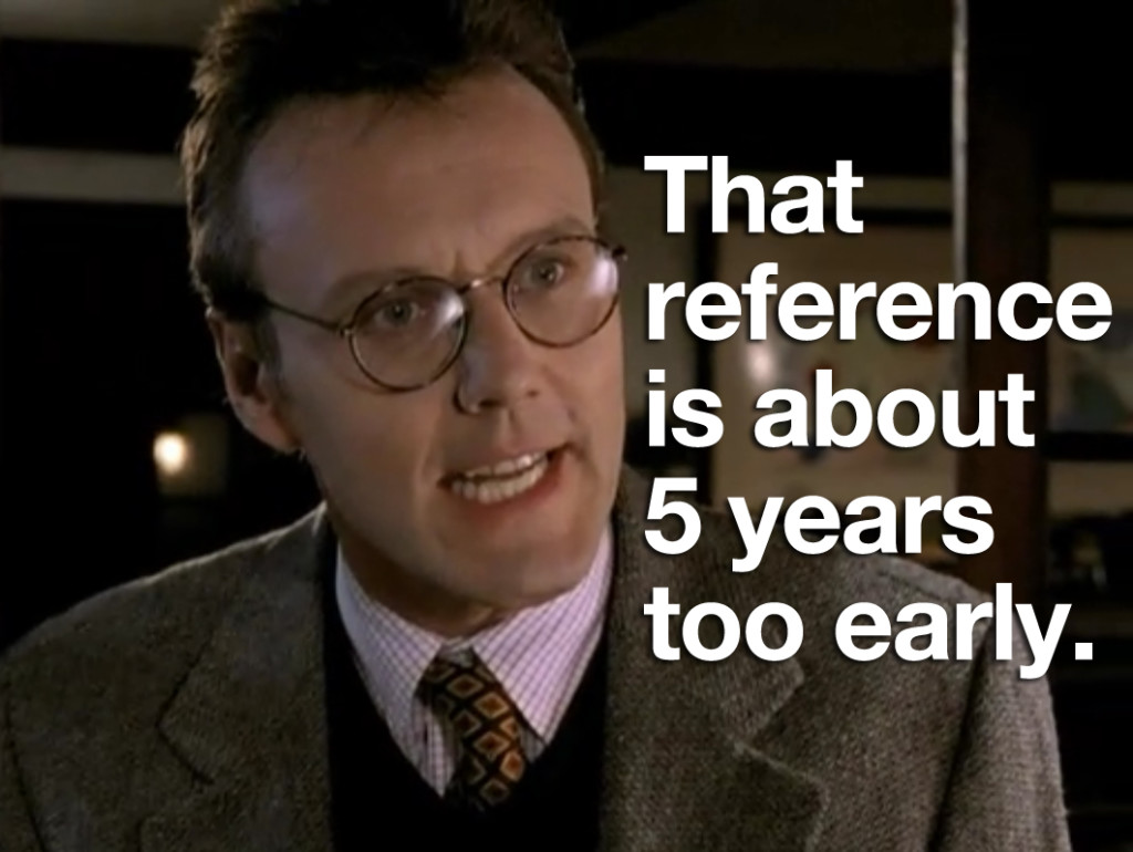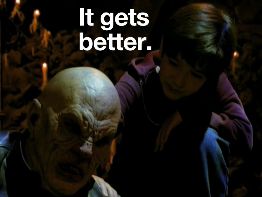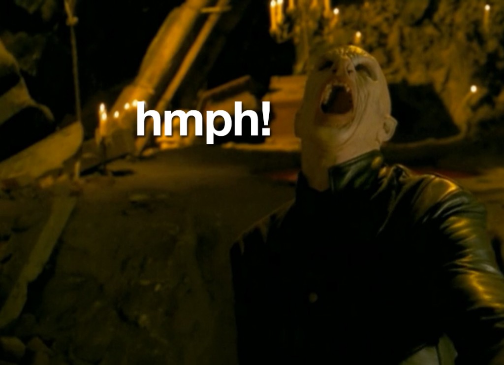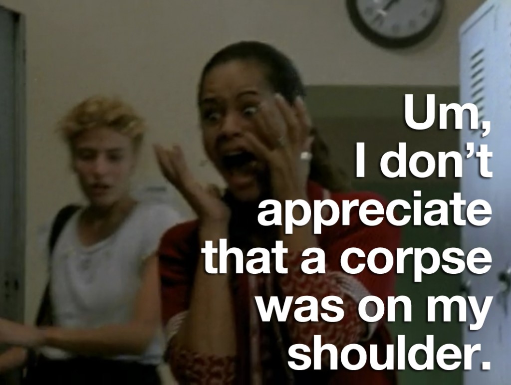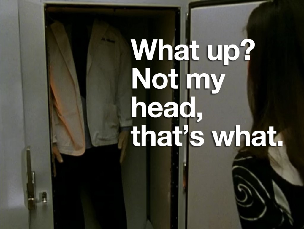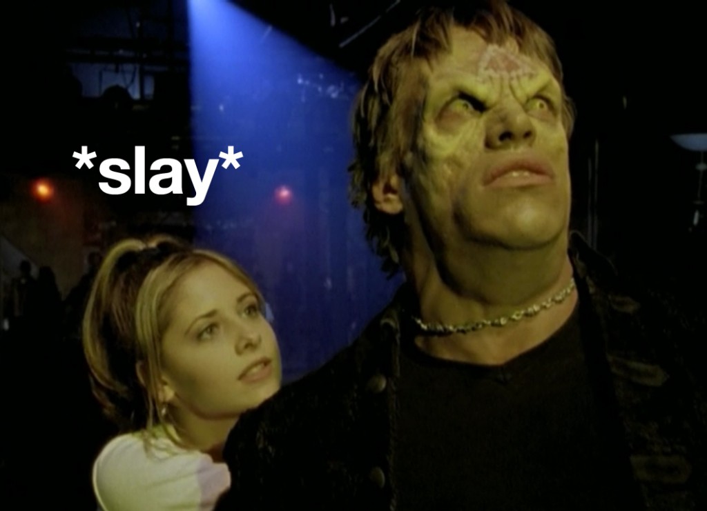 So the first thing I’ve learned this weekend is that a lot of people like Buffy the Vampire Slayer and the second thing I’ve learned is that people who like Buffy the Vampire Slayer generally don’t mix well with people who observe oddities in Buffy the Vampire Slayer. The third thing I learned is that, then in turn, a lot of people don’t like me. Needless to say, I was sort of getting used to people who were just on this site and knew what my sense of humor was…but now there are new people, and they simply do not get it. So now I have to, like, “think” and “delve deeper.” Exhausting.
