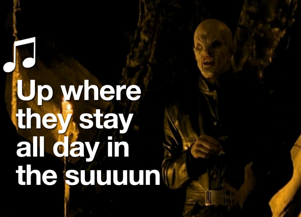 Anyway, The Harvest is about to take place, which is when The Master will drink a lot of people’s blood and finally be able to walk above ground after being underground for sixty years. So, he’s basically like Ariel from The Little Mermaid.