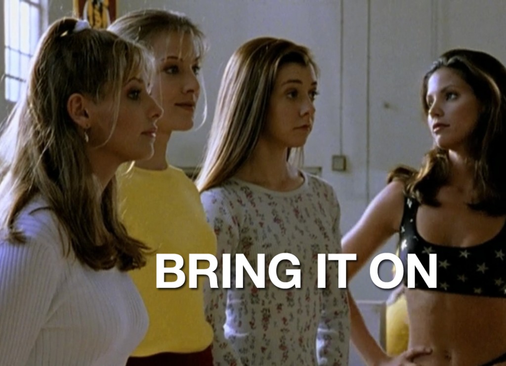 Being that this is the first official post of these kinds, I’ve got to mention that this was a show that won the Summer Rewatch tournament. And I was quite excited, seeing that Buffy is one of the most iconic television series ever and it was almost embarrassing that I had yet to even watch one episode. I won’t say that I’m a Whedonite, not even close (obviously or not I would have watched Buffy by now…), but I did like The Avengers; Dollhouse is on my list of cancelled shows you should watch anyway; that one Glee hour he directed is one of the only ones I can stomach now; Roseanne is always hilarious; I very much enjoyed Dr. Horrible; and who the hell doesn’t love Toy Story? People with no soul, that’s who! And the extent of my Sarah Michelle Gellar viewing was Scooby-Doo. Only after I watched Ringer have I seen I Know What You Did Last Summer and Cruel Intentions (amazing!).