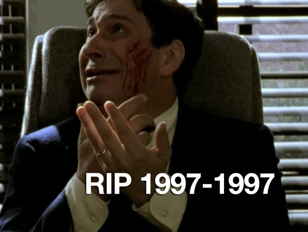 This episode finds the high school bullies, and Xander, getting possessed (in a way) by hyenas in a zoo. Not only do they become douchey, but they also start acting…like hyenas, in that they begin eating people. It may be topical now but it’s still downright gross. Anyway, Buffy, Giles, and Willow figure stuff out and then the bullies, but more importantly Xander, become un-possessed. Episode over.