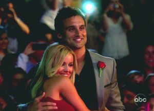 This week’s roses go to…Kalon, Arie, Michael, Nate, Sean, Chris, Doug, Travis, Tony, John, Alessandro, Charlie, Alejandro, and Stevie. Biology teacher Aaron with the sweet glasses was sent home, along with Kyle who made some silly comments about getting his heart broken one week in. Here’s to hoping at least a couple of those guys prove themselves in the weeks to come. Chances are good with Arie and Chris up for one-on-one dates next week, both of which have made good impressions so far.