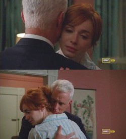 There were many reunions on the show between estranged characters. Ken returned to the gang. Midge was back; I don’t like her, by the way. Don and Betty had this “moment” in the finale when he told her was engaged. Anndd, Roger & Joan.