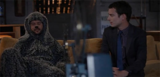 Those of you who watched last season know that Wilfred and Ryan’s main hangout is Ryan’s basement. One of the big cliffhangers of the finale was the reveal that the basement was instead just a closet—further messing with Ryan’s grip on sanity that’s been loose through the season. I mean, other than the fact that he sees his neighbor’s dog as a lewd Australian in a dog costume. Suddenly, there they were hanging out downstairs like nothing at all had happened to suggest the basement wasn’t always there. There’s an explanation for that which this episode doesn’t touch, and it can be found in what I’m going to refer to as Wilfred’s lost episode (because it sounds cool). Actually, it’s just the ‘preview’ episode FX aired quietly last week outside of the official premiere, but it’s an essential episode to the series and I urge Wilfred fans to seek it out. It’s Wilfred gone completely bat-sh** as over the course of the half hour all of the questions the show posed in season one are twisted around in a surreal installment that featured the best Good Will Hunting homage ever. Remember, Wilfred and Ryan do love the film oeuvre of Matt Damon. So if you’re looking for a deeper analysis, or answers for the big cliffhangers from season one then I highly suggest you watch that ‘real’ first episode to find them. And then sit back as the creators smirk at you for thinking that on this show answers matter. It’s a great way to flip expectations as this show is firmly anti giving any concrete reason why Wilfred is seen by Ryan the way he is, but they do hope you keep asking so they can continue to mess with yours and Ryan’s minds.