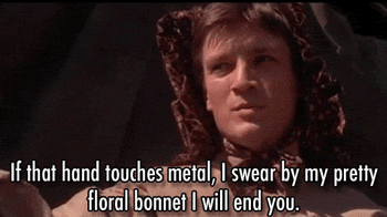 There are 9 of them, 9 insanely compelling characters (even if some are a bit underused in a few episodes): Malcolm Reynolds, the captain of the ship. He fought in the war against the Alliance (the scary government) 6 years before and lost. His army buddy, Zoe, is still there with him. She’s VERY loyal to him which pisses her husband off, Wash, the pilot of Serenity. Then there’s Kaylee, the genius of a mechanic. She’s probably the most endearing character on this show because how naive and yet bluntly honest she is. You’d never expect a mechanic to be this adorable, but she totally is. Inara is a registered companion (prostitute) that rents a shuttle from Mal who likes her privacy and doesn’t get involved in the crew’s misbehavings (most of the time). And let’s not forget Jayne, the one character who manages piss me off every single episode. I don’t know about the fandom, but he’s not one of the characters I’m necessarily in love with. Sure, he has his moments when he’s SO stupid that it’s a laugh-out-loud situation, but at the other times he’s either doing something mean or saying something mean. The passengers are a Shepherd (who we learn in the finale is NOT a shepherd. WHO IS HE?), a doctor, Simon, and his sister, River, fugitives running away from the Alliance. Apparently, the Alliance messed up with River’s mind (she was/is pure genius) and her brother freed her from her them. See what an extraordinary group they are?