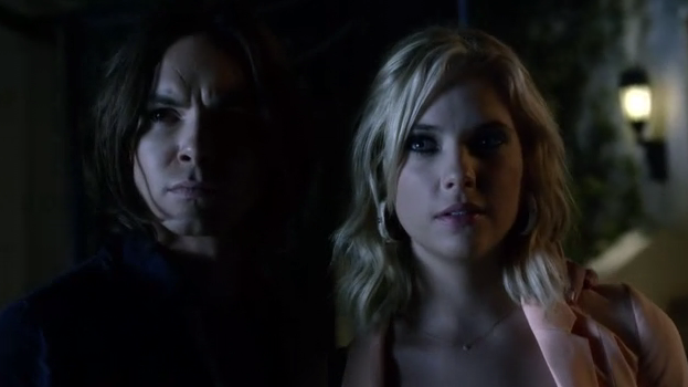 Meanwhile, at school, Emily asks Paige if she wants to go see the Katy Perry movie with her. It’s so good to see Em moving on! But it was such an awkward conversation, especially because Paige thought Emily was avoiding her. Kind of like: “Hey do you want to go to the movies with me?” “Weren’t you avoiding me?” “No. Yes. Well, yes but not on purpose.” “K, cool, let’s go.” And Emily cancelled later, so they didn’t even went out. And Jenna revealed to everybody that she’s not blind anymore. Apparently she told people that she did another surgery and that this one worked. What a liar. But everyone lies on this show, so. And I have to admit I think Jenna is not part of the A Team but I am curious as to what is going on with her.