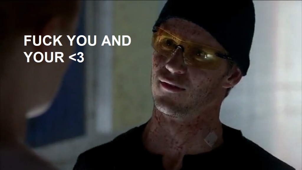 8) Jason is hallucinating his parents, who urge him to be extra racist towards vampires. Jessica tells Jason she loves him and he is a dick.