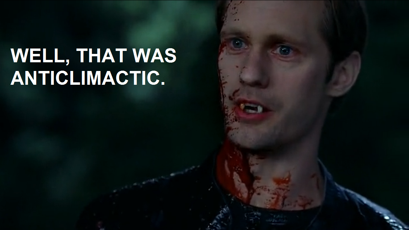 Honestly, the greatness of this finale only highlighted the huge flaws the rest of this season contained. I feel that much of the season was very slowly paced. I had thought that we would see the actual war happen in this season but it appears we will have to wait until next summer to see the humans and the vampires finally have at it. There was too much time wasted on storylines that didn’t even pan out well, such as Lafayette’s demon possession or the Ifrit. Tara and Pam being confined to Fangtasia for most of the season made them pretty useless and irrelevant. I would have rathered that the season had focused more on speeding up the main Lilith/vampire war storyline than trying to give the multitudes of characters all equal screentime (in that respect, getting rid of Hoyt was a good idea). In addition, I feel that after the debacle of the last season, which was entirely too much of the love triangle, the writers retreated hastily in the opposite direction this time. But having none to few romantic storylines at all made the season a little dull.