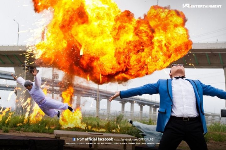 So the scene! We see a man walk through a dark parking garage and a shadowy figure is watching him. There’s a Big Gulp cup on the roof of his car, and when he grabs it to move it, BAM, the biggest explosion of all time ever.