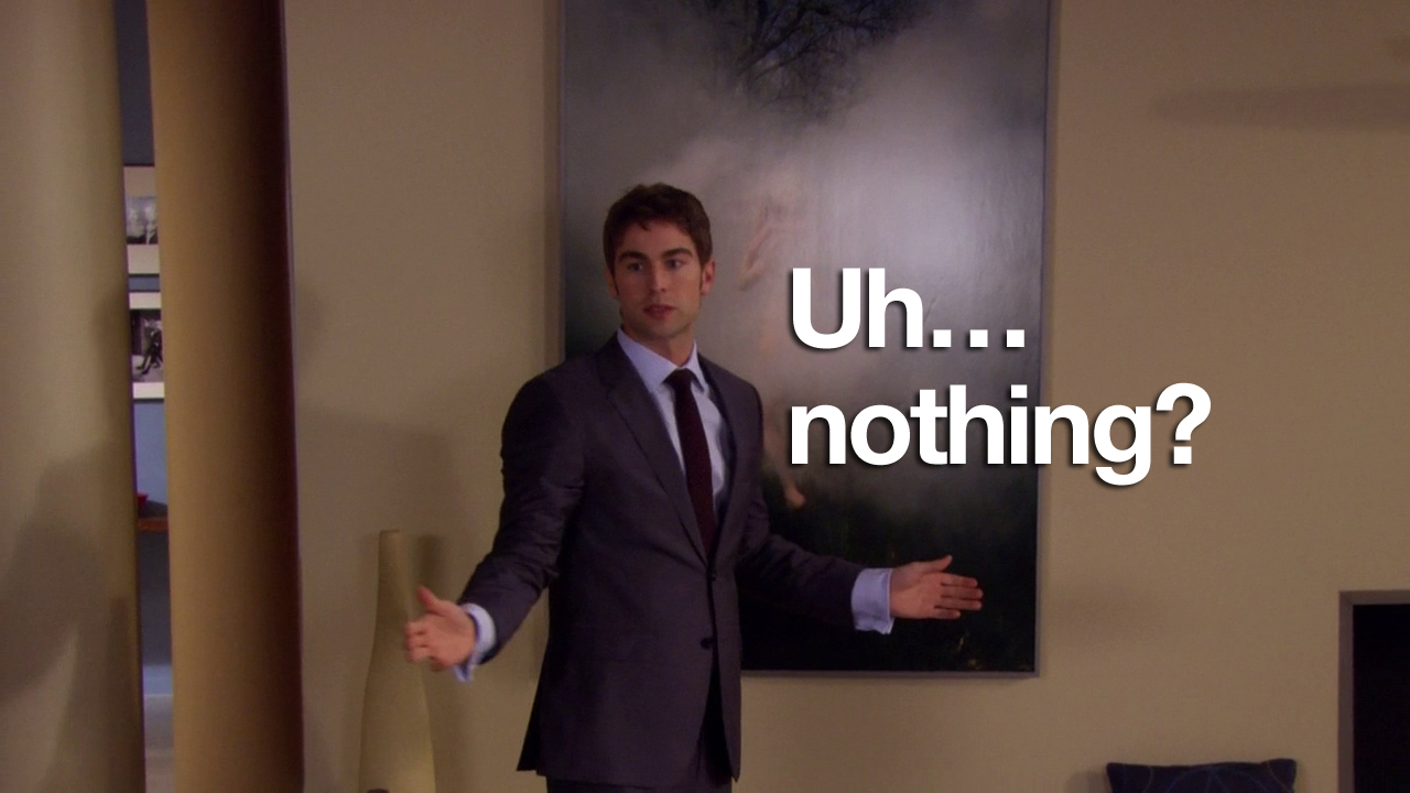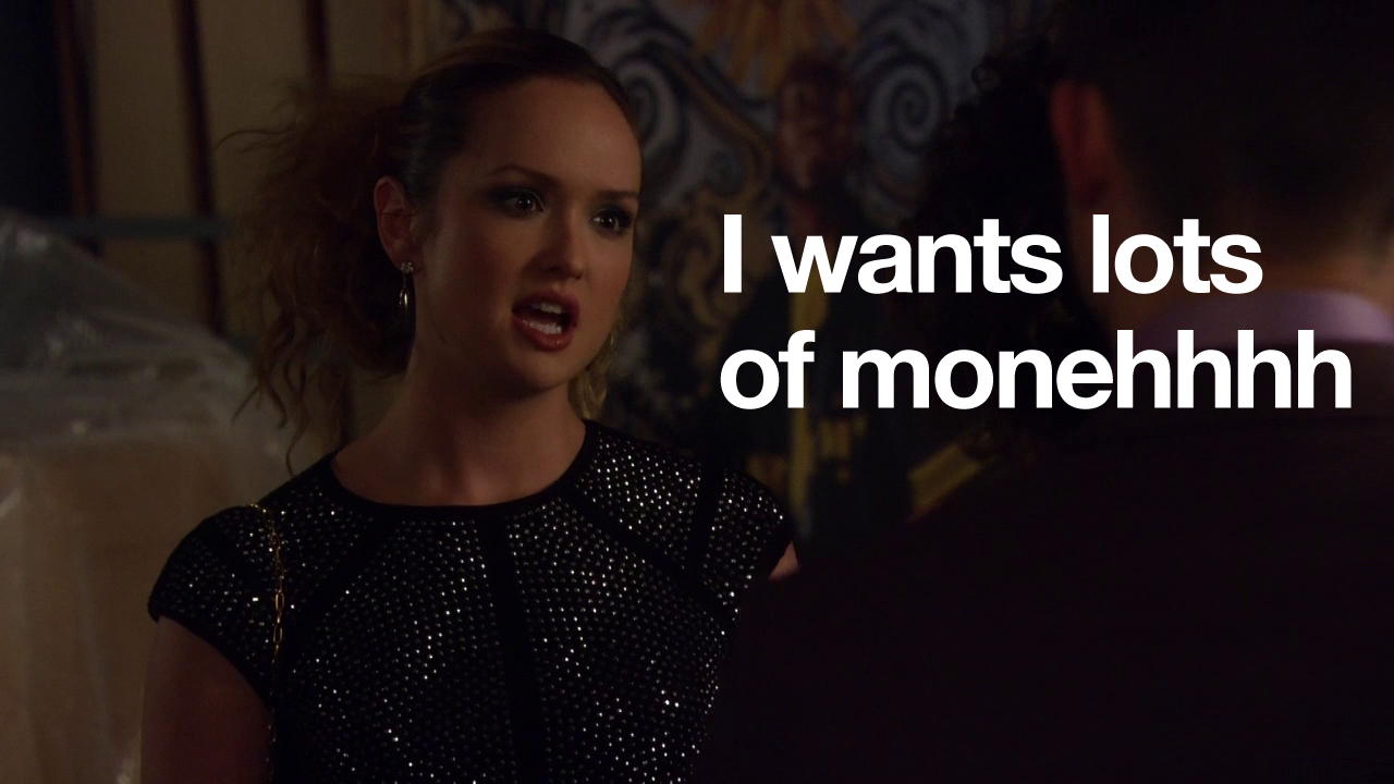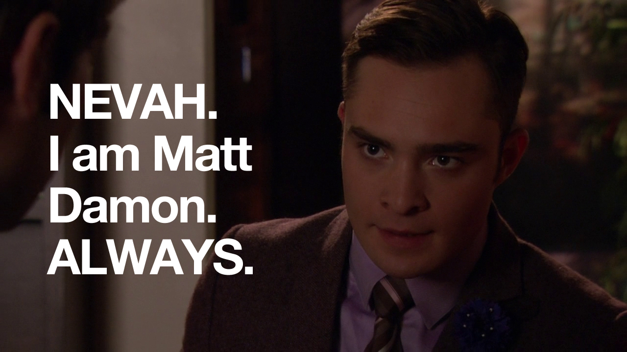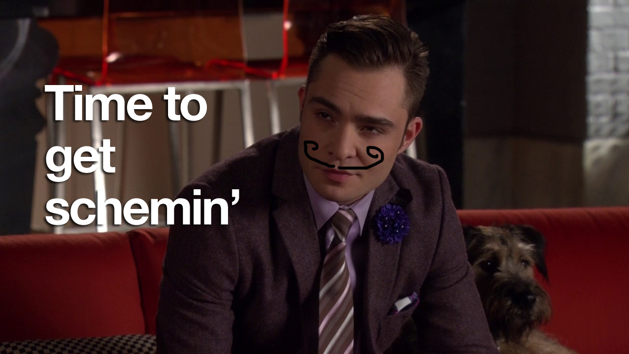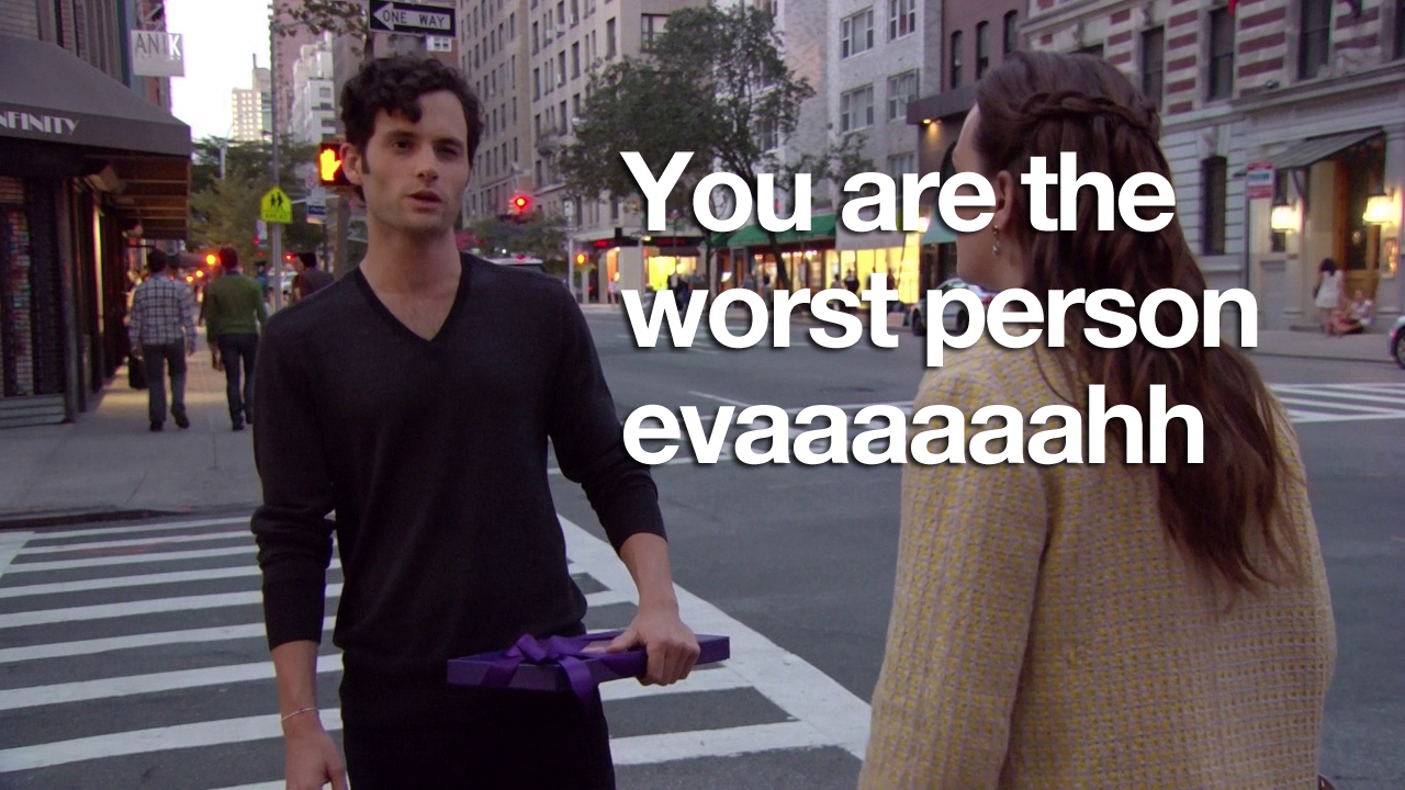In this episode, Ivy and Rufus spend all of their money making Lily huff and puff and blow your house down! Chuck and Nate are doing math, which is just a bad sign if Nate’s doing math. Blair is trying to defeat the Dark Side – but can’t understand common courtesy at all. And Serena and Dan get it in. Remember two episodes when they hated each other? Me neither.
