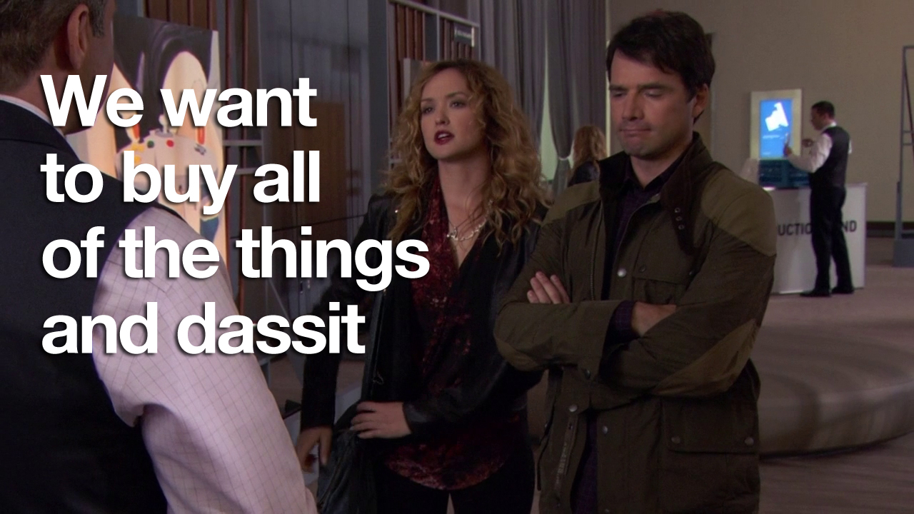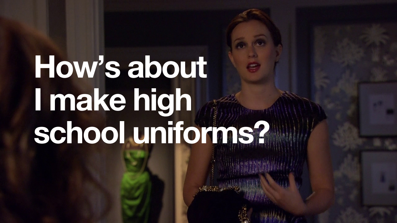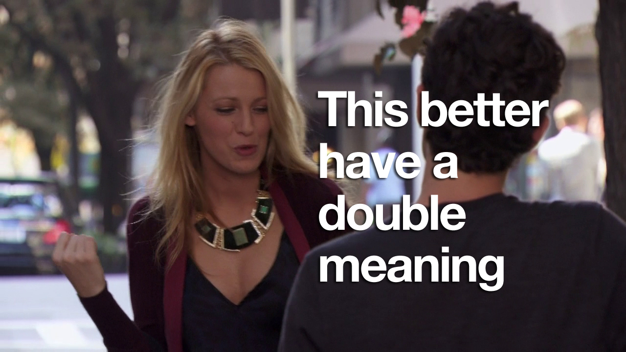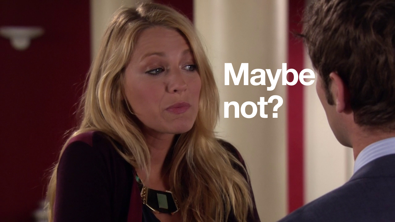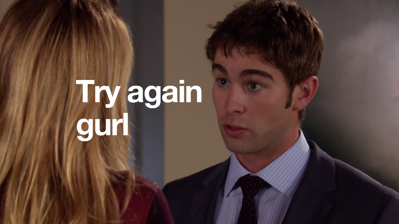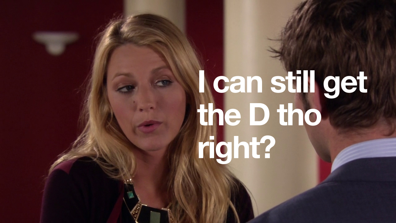 In this episode, Ivy and Rufus spend all of their money making Lily huff and puff and blow your house down! Chuck and Nate are doing math, which is just a bad sign if Nate’s doing math. Blair is trying to defeat the Dark Side – but can’t understand common courtesy at all. And Serena and Dan get it in. Remember two episodes when they hated each other? Me neither.