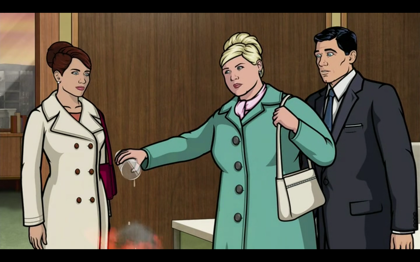 A large part of this is due to the show finally giving us a taste of its entire cast. You may have noticed, or at least I did, that the show was sort of all over the place with its characters the past few weeks. Last week, Pam and Cheryl had roughly two scenes whereas Archer had only a handful the week before, instead devoting most of “Legs” to Ray and Krieger. It’s been pretty inconsistent with screen time, but luckily, “Vicious Coupling” is here to solve allof that. This episode has some great moments from all of them, starting with Cheryl setting fires again and ending with Cyril and Ray naked and passed out. In between, the show gives some great moments to Lana and Cyril (voted “Least Likely Couple to Get Back Together,” right?) and an amazing sub-plot with the return of Katya and Barry… alongside Other Barry, of course.