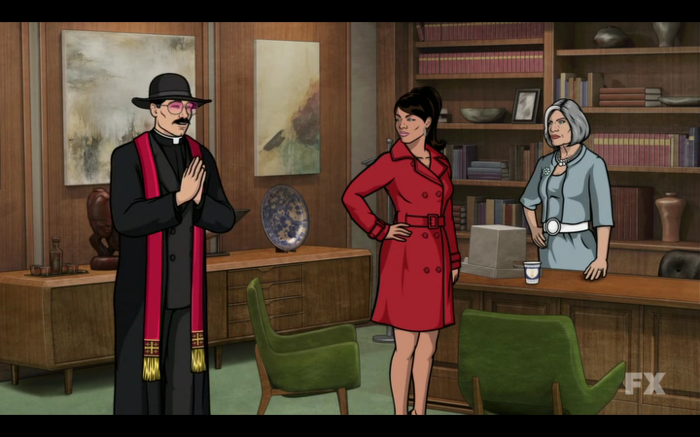 Totally agree that this was one of the better episodes of the season! I don't think I stopped laughing for a moment, especially when it looked like Pam had killed the pope. I'm wondering if they're ever gonna bring back the Pam/Archer hooking up storyline. I know a lot of people were looking forward to it, hoping that it might develop into an actual relationship.