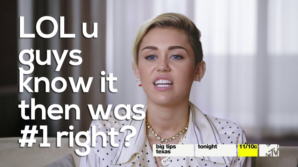 Last night, the most important hour of television finally aired — Miley: The Movement. That’s right, guys, the only relevant singer right now poured it all. OK, maybe not all. But she basically recounted the timeline between the release of “We Can’t Stop” and a couple of days after the notorious VMA show.