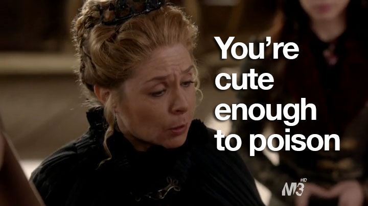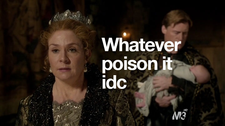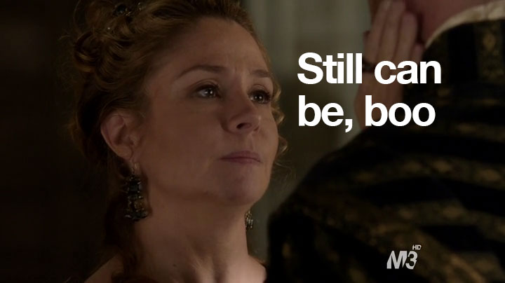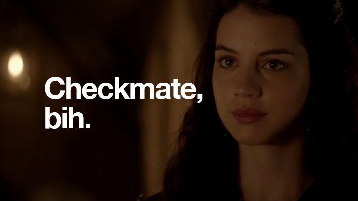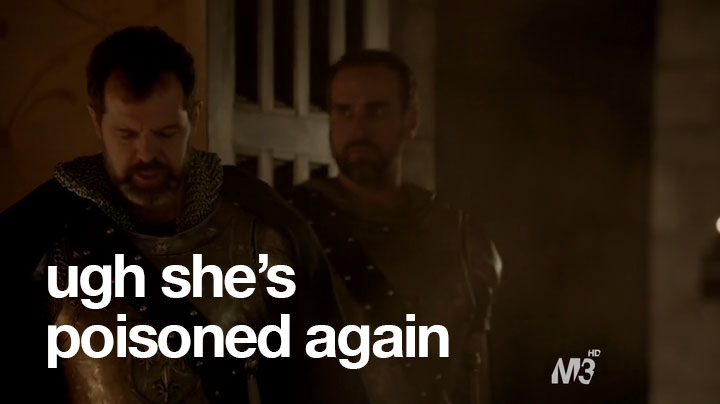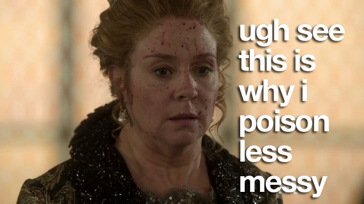 Didn’t you hear? Reign was renewed for season two! I’ve only watched three episodes, but even I know that obviously the CW execs were scared that Catherine might poison them.